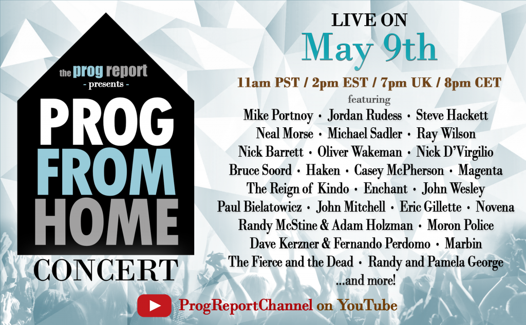 Prog Rock news outlet The Prog Report is pleased to announce an All-Star event featuring some of the biggest names in the Progressive Rock.  The event titled ‘Prog From Home’ will premiere on The Prog Report YouTube channel on Saturday, May 9th at 11 am PST / 2 pm EST / 7 pm UK / 8 pm CET.