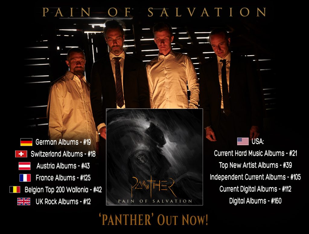 In other news, Pain of Salvation’s freshly released new studio album “PANTHER” managed to enter various international sales charts including the following: Germany # 19, Switzerland # 18, Austria # 43, Belgium (Wallonia) # 42, France # 125, UK Rock Album Chart # 12 as well as # 21 in the “Current Hard Music Albums” chart in the USA.