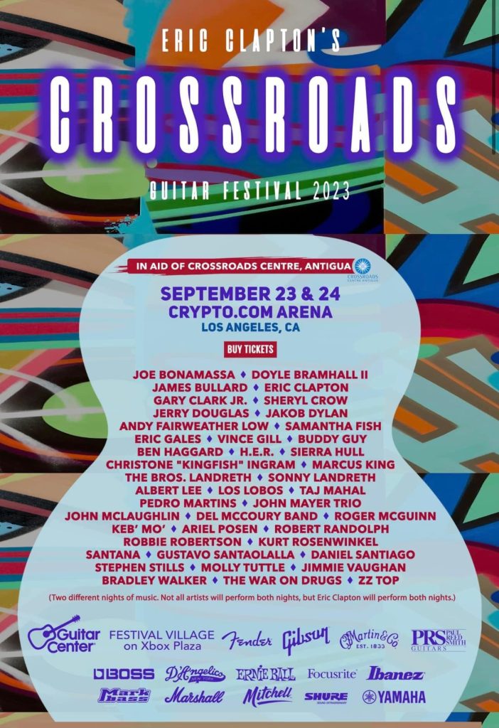 Eric Clapton announced today the 7th installment of the Crossroads Guitar Festival. The Festival, which has become legendary in its own right for hosting performances and impromptu collaborations from the world’s most renowned guitar players, will take place over two nights on September 23rd and 24th at the Crypto.com Arena in Los Angeles, CA. Clapton will gather the past, present and future of guitar music onto one stage for an unparalleled musical event featuring performances from the below list of notable guitarists. Tickets to the Festival will go on sale this Friday, April 21 at 10:00 a.m. local via Ticketmaster. Please note that each day will be sold as its own ticket and there will not be 2-day passes.