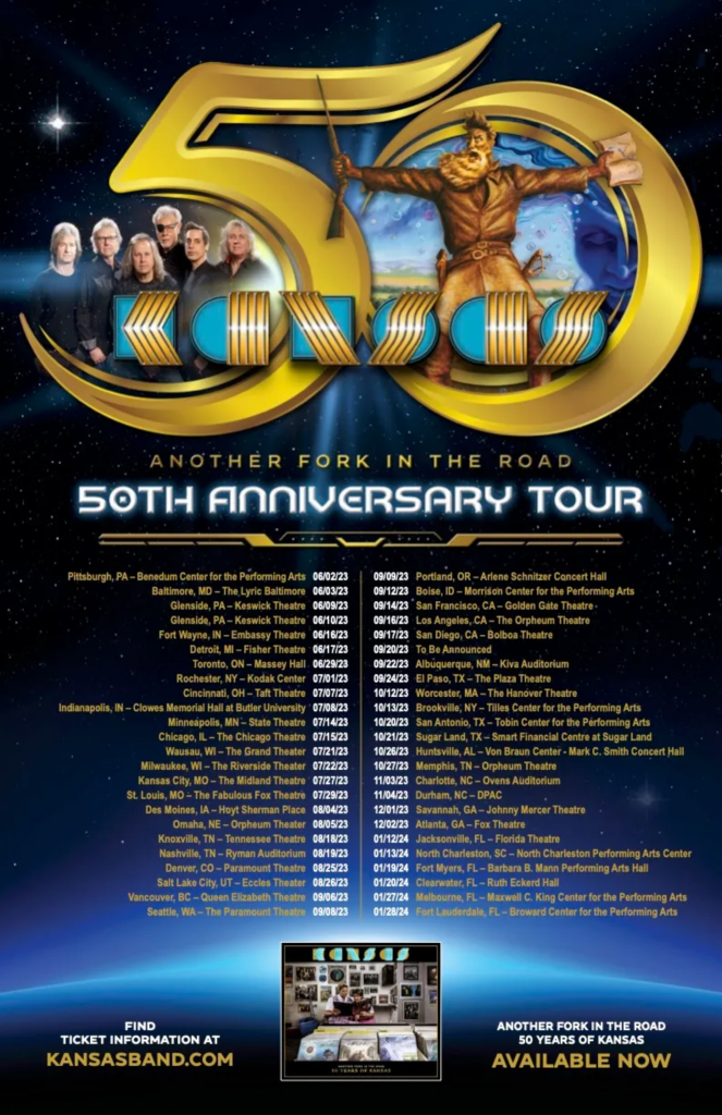A complete list of KANSAS 50th Anniversary Tour – Another Fork in the Road is below. Ticket and VIP Package information can be found at KansasBand.com.