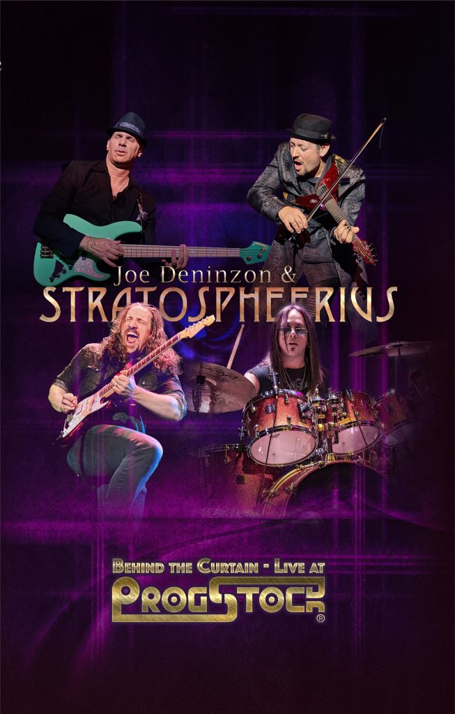 Prolusion. US band Joe Deninzon & Stratospheerius have been around for 20 years or thereabouts, with the band name being a nod back to Deninzon’s solo album “The Adventures of Stratospheerius” from 2002. Just where the dividing line between Deninzon’s early solo career stops and the chronicles of Stratospheerius begins is, I guess, a bit of an open question. Following three studio albums and one live album designated to Stratospheerius, the band are now out with a live CD/DVD/Blu-Ray box set. This creation is called “Behind the Curtain. Live at Progstock”, and was released by USA label Melodic Revolution Records in the spring of 2023.