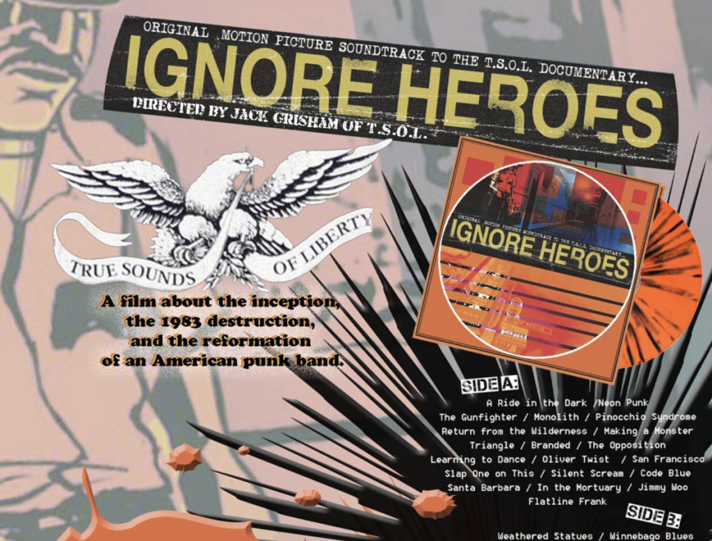 The original motion picture soundtrack of the T.S.O.L. documentary IGNORE HEROES is now available digitally and on vinyl via DC-Jam Records and record stores worldwide.