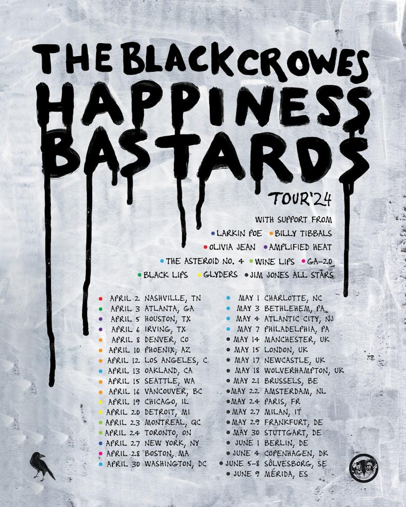 In celebration of the forthcoming new record, The Black Crowes will be returning to the road this Spring with the 35-date Happiness Bastards Tour. Limited tickets are available HERE