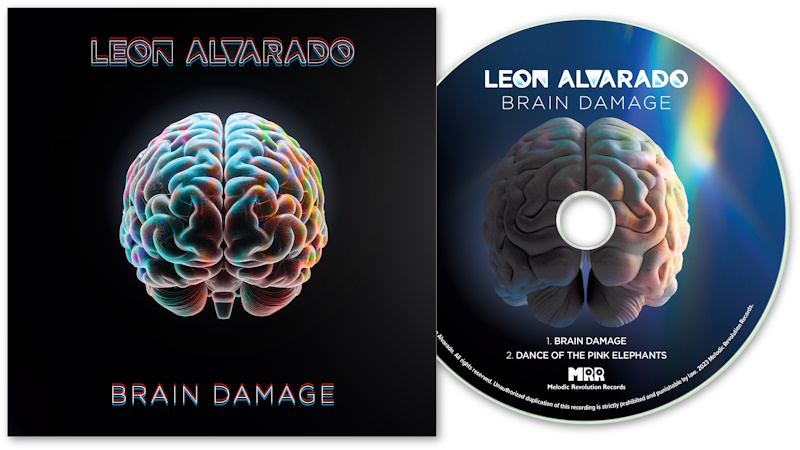 In addition to “Brain Damage,” the EP includes a captivating new instrumental track titled “Dance of The Pink Elephants.” Exploring the theme of alcohol hallucinosis, Alvarado’s latest creation blends psychedelic tones with intricate melodies, offering listeners a mesmerizing auditory experience. The track features Tony Franklin (The Firm) on fretless bass and Edoardo Scordo on guitars.