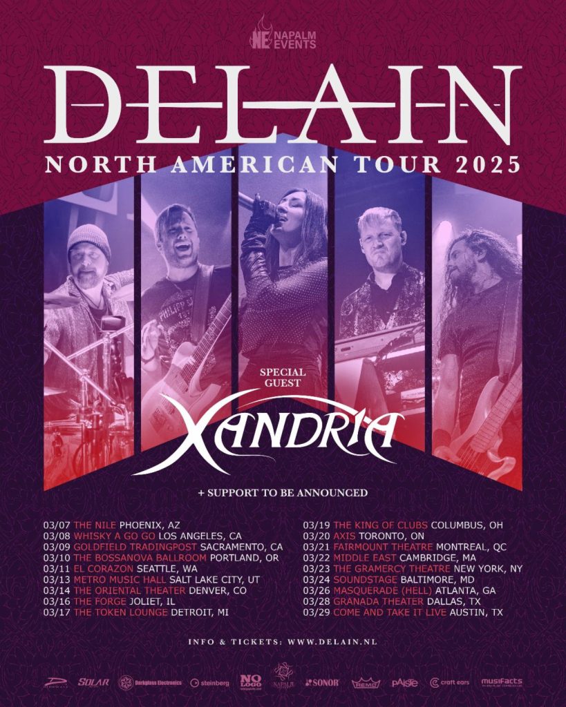 Fans should expect to hear DELAIN and XANDRIA fan favorites, the latest hits, as well as brand new material from both bands during this tour, so don’t miss out! Kicking off on March 7 in Phoenix, AZ, the tour will visit several major cities across North America, ending in Austin, TX on March 29. Tickets are on sale now – visit www.delain.nl and get yours before they are gone!