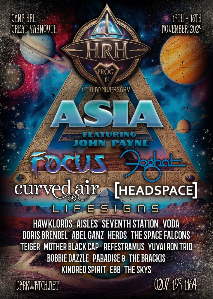 Joining the ranks of the already titanic lineup featuring Asia and Headspace are the likes of Foghat, Lifesigns, and Focus. Together, they are shaping HRH Prog 15 into a cosmic journey of musical exploration like no other on the planet.