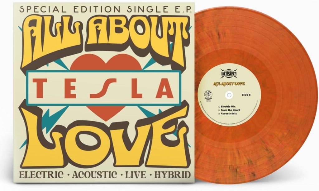 Music lovers will state that a great “song” will sound great played in any of these formats, so TESLA’s Brian Wheat and Frank Hannon have teamed up to produce this 12” Vinyl EP of their new single “All About Love” showcasing these different versions of the song.