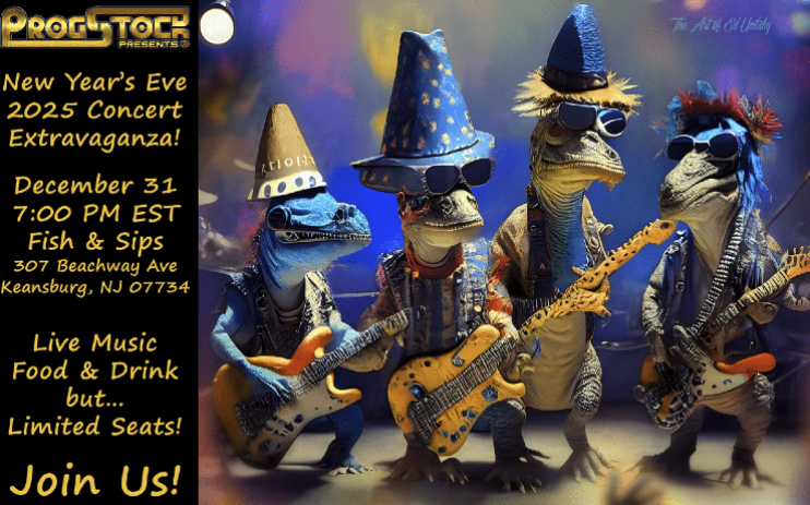 As the clock winds down on 2025, ProgStock invites you to our annual New Year’s Eve bash! Please come join us to hang out with old friends, and perhaps meet some new ones, at a night filled with great music, lively socializing, and a festive atmosphere that’ll have you ringing in the New Year in style.
