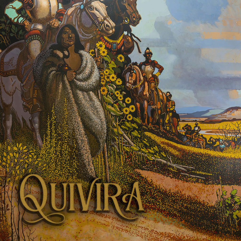 QUIVIRA’s debut single, “Quivira Bound,” draws its visual identity from a defining piece of Kansas history: “The Coming of the Spaniards,” the monumental mural inside the Kansas State Capitol. The artwork depicts the moment Spanish explorers entered the region that would become Kansas, a moment of cultural collision, consequence, and transformation.