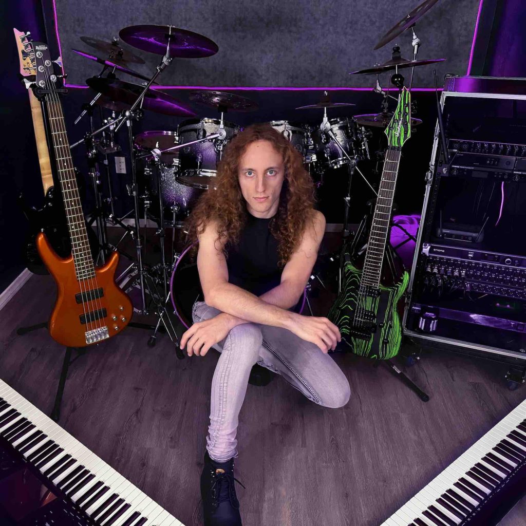 Atlas shares, “Joe and I were at my studio going over some vocals for the upcoming Toto tour. I showed him my rough draft for a video I had for ‘Violent Power,’ since he had expressed interest in helping me with this kind of stuff. He completely altered what would become the world’s introduction to this album, steering the imagery, lighting, and videography into a vision that supported the song. Then, he even helped guide me down the right path with the editing. Once he was involved, what we came up with immediately made my rough draft look like a joke! It was night and day! I couldn’t be more thankful and appreciative of his time and support. And thank you to my good friends Marco Minnemann (on drums) and Steve Bonino (co-writer of this song) for making their cameos in this video! And to Sabrina at UnicornCat Artworks for the awesome animated album cover. To me, the video now perfectly encapsulates the energy of the song ‘Violent Power,’ ready for release as the lead single!”