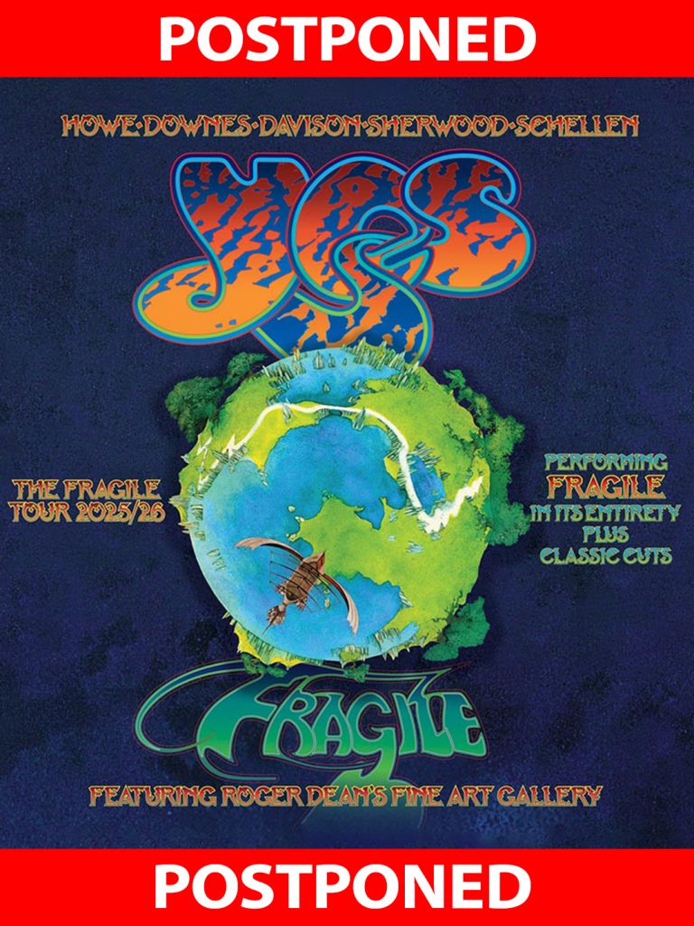 2nd April 2026: The upcoming YES Fragile UK and EU Tour, due to commence on 22nd April, has had to be postponed as guitarist Steve Howe requires an essential operation that requires recovery time. This decision has been made to ensure that Steve can return to the stage in full health and deliver the performances that fans deserve.